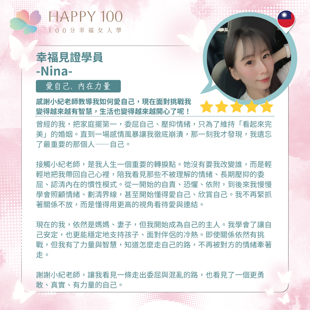 現在的 Nina,依然是媽媽、妻子,但她成為了 自己人生的主人。